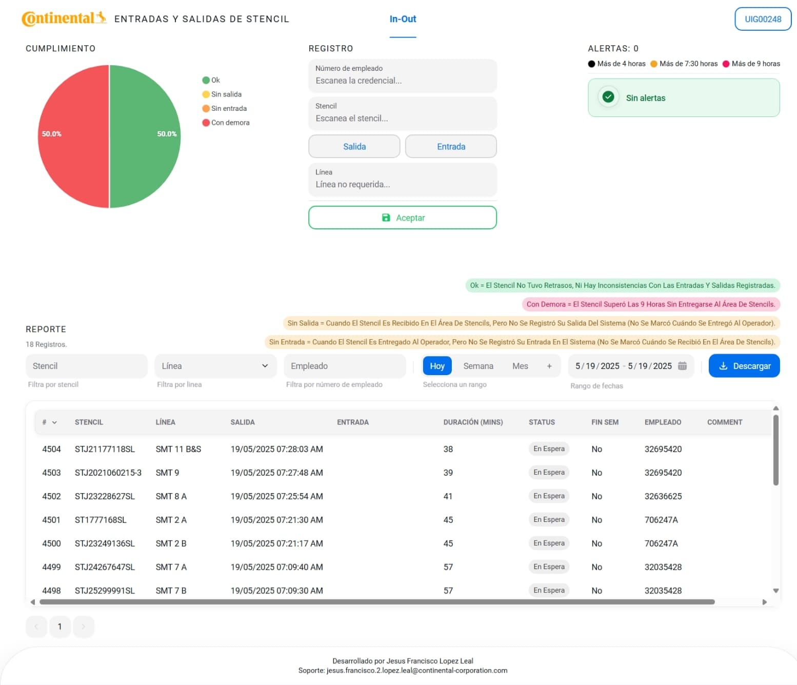 - Operator and production line tracking for each stencil checkout.